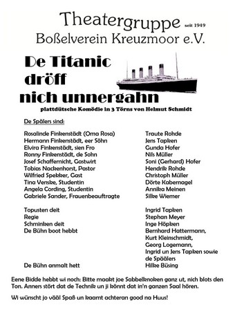 Bilder De Titanic dröff nich unnergahn (2011) - Theatergruppe Kreuzmoor