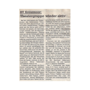 Zeitungsartikel Dat Inserat (1992) - Theatergruppe Kreuzmoor