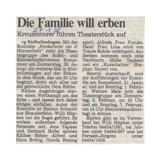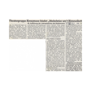 Zeitungsartikel Stiekelwier um't Himmelbett (1998) - Theatergruppe Kreuzmoor